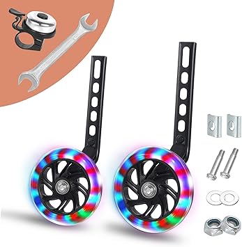 Amazon Com Wioseioc Bike Training Wheels Thicken Stronger Flash Mute Wheel Adjustable Stabilizer Suitable For 12 14 16 18 20 Inch Single Speed Bike Including Mounted Kit Sports Outdoors