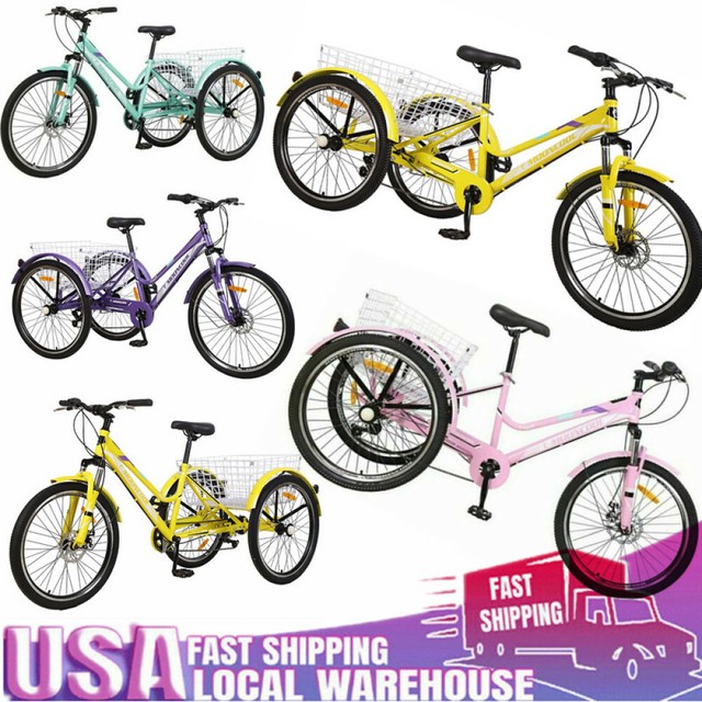 Adult Tricycle 24 7 Speed 3 Wheel Shimano Bike Trike W Basket Installation Tool Ebay